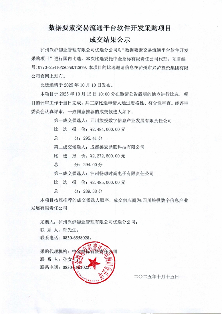 數(shù)據(jù)要素交易流通平臺軟件開發(fā)采購項目成交結(jié)果公示