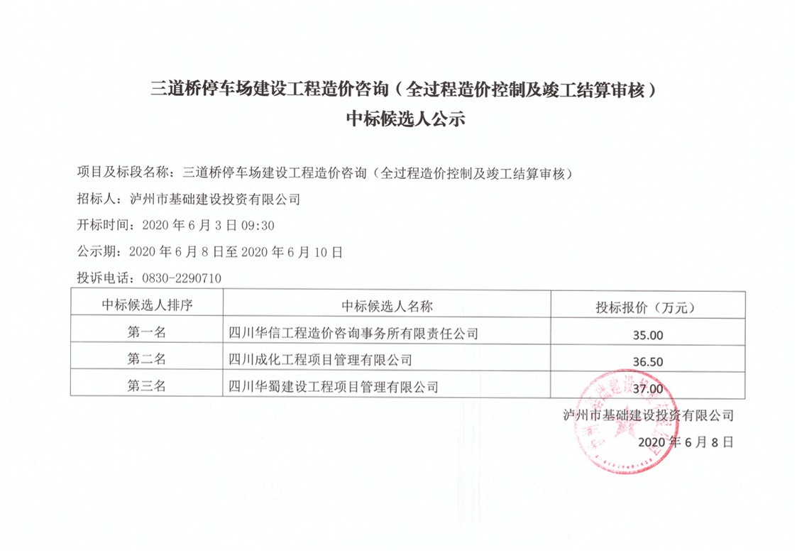 三道橋停車場建設工程造價咨詢(全過程造價控制及竣工結算審核)中標候選人公示