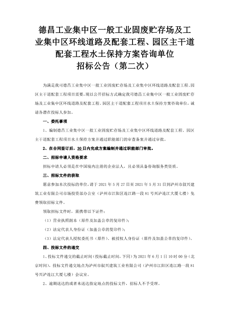 德昌工業(yè)集中區(qū)一般工業(yè)固廢貯存場(chǎng)及工業(yè)集中區(qū)環(huán)線道路及配套工程、園區(qū)主干道配套工程水土保持方案咨詢(xún)單位招標(biāo)公告(第二次)