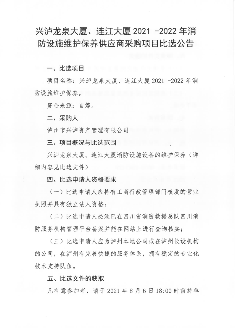 興瀘龍泉大廈、連江大廈2021-2022年消防設施維護保養(yǎng)供應商采購項目比選公告