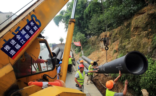 圖為江陽區(qū)全域供水項目管道安裝現(xiàn)場