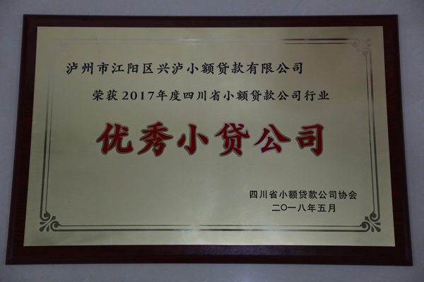 興瀘小額貸款公司榮獲“2017年度四川省優(yōu)秀小額貸款公司”稱號